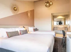 I did not like the furniture and entrance the whole place is old and dated to the 1980s style ,desperately needs a makeover ,if your into gambling and nightclubs and getting wasted then this is the place to go! the place is clean and good quality sheets and towels ,very basic essentials you can go to the bistro in the morning for breakfast, they have a gaming room and nightclub which is not for me, but plenty of people like that.you cant get the room dark as the light from outside filters inn, they have wooden Venetian blinds ,which don’t keep the room dark!good quality drapes or plantation shutters would work well.the light in the bathroom is dim. the mattress is firm which is good.
